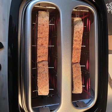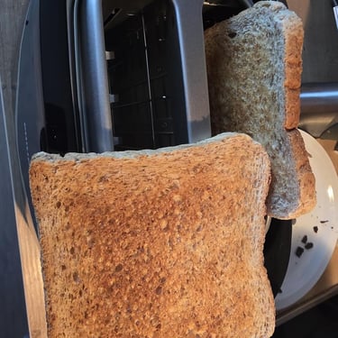 Ich präsentiere: den neuen Toaster – oder wie wir ihn nennen: unseren Küchendirektor für goldbraune Perfektion. Dieses kleine schwarze Kraftpaket passt nicht nur optisch hervorragend in unsere Küche, sondern liefert auch toasttechnisch eine Performance, die sich sehen (und schmecken) lassen kann.